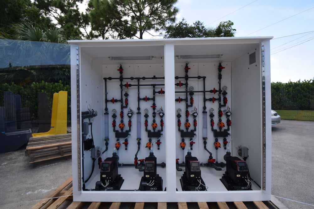 We fabricate custom skid shells designed to house chemical metering systems—perfect for situations where our standard rotomolded skids don’t match your specific space or dimensional requirements.